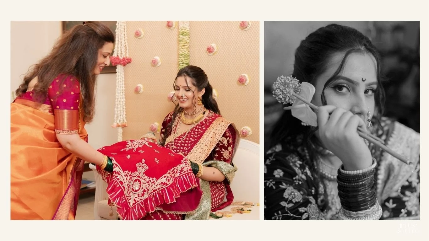 The celebrations began with intimate home ceremonies, including the Sumangli Pooja. Tejeshwari wore a restored nine yard Navari saree that once belonged to her grandmother, carefully revived and reworked to honour her Maratha roots. This deeply personal beginning set an emotional and culturally grounded tone for the days ahead.